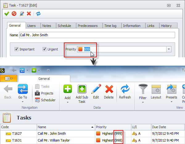 Set numeric priority to additionally sort tasks within each priority level (screenshot)