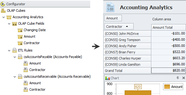Design OLAP cubes to collect analytical data for pivot grids and charts (screenshot)