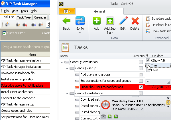 Get notifications of overdue tasks and set 'overdue' filter to avoid procrastination (screenshot)