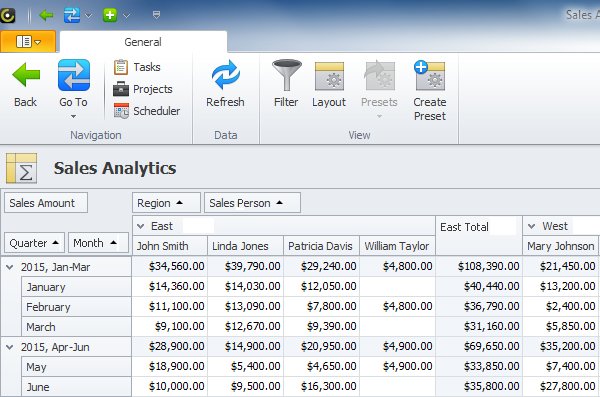 Use Pivot tables to analyze your business data and measure your company progress (screenshot)