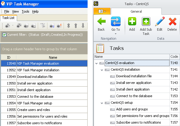 We prepared a migration solution that lets you continue working with your current VIP Task Manager database. Learn more about "How to migrate from VIP Task Manager to CentriQS"