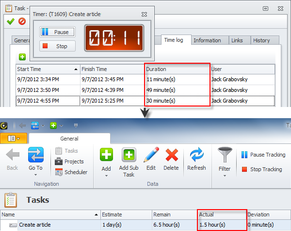 Use task timer and time log to automatically and manually track time you spend on tasks