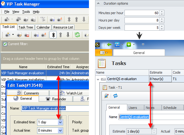 Set number of working hours per day, days per week, etc. to calculate 'true' task duration (screenshot)
